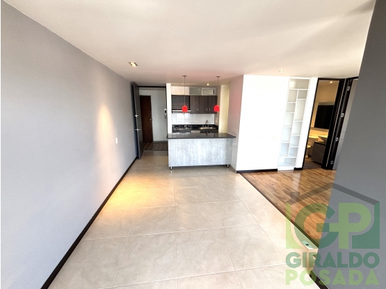 96gp45900 Arriendo hermoso apartamento en Sabaneta – Prados de Sabaneta, área 56 mt2, 2 alcobas, la principal con baño y vestier, la segunda alcoba es abierta o se puede utilizar como estudio; baño social, sala comedor, balcón con vista panorámica, cocina integral tipo isla con red de gas, calentador de paso, zona de ropas, piso en cerámica y madera laminada, parqueadero, cuarto útil, estrato 4, piso 22.